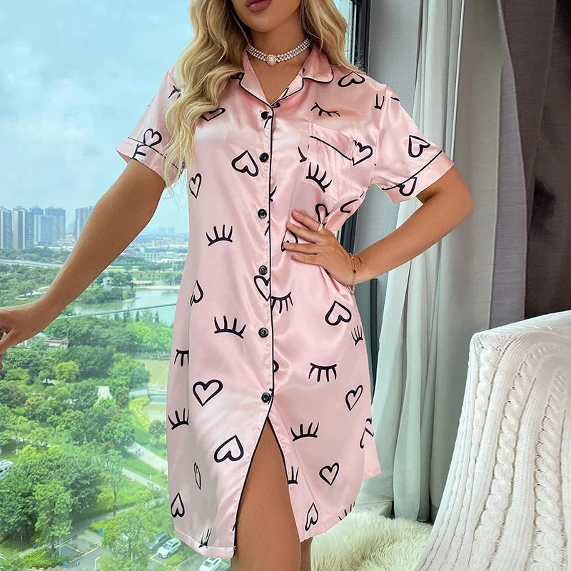 Ma chemise de nuit courte boutonnée en polyester pour un entretien facile