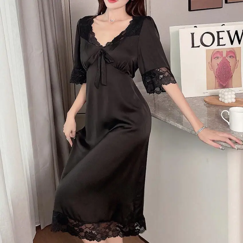 Ma chemise de nuit longue noir en satin pour une nuit douce